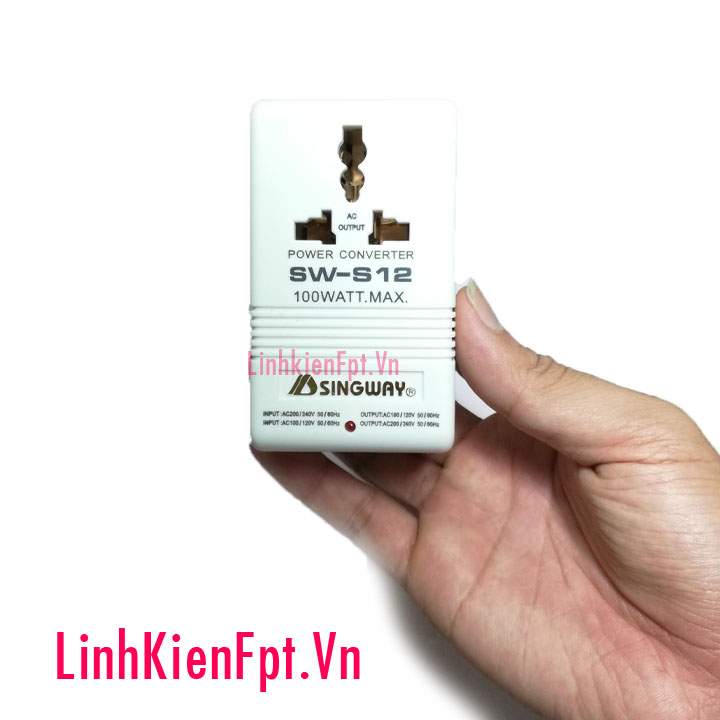 Bộ đổi nguồn điện 220v thành 110v và ngược lại Singway (công suất 100W) sử dụng cho các thiết bị điện mua từ Nhật Bản sử dụng điện áp 110v (điện áp lưới tại Việt Nam là 220v) và ngược lại. Việc sử dụng đúng điện áp giúp các thiết bị điện nội địa không bị hỏng