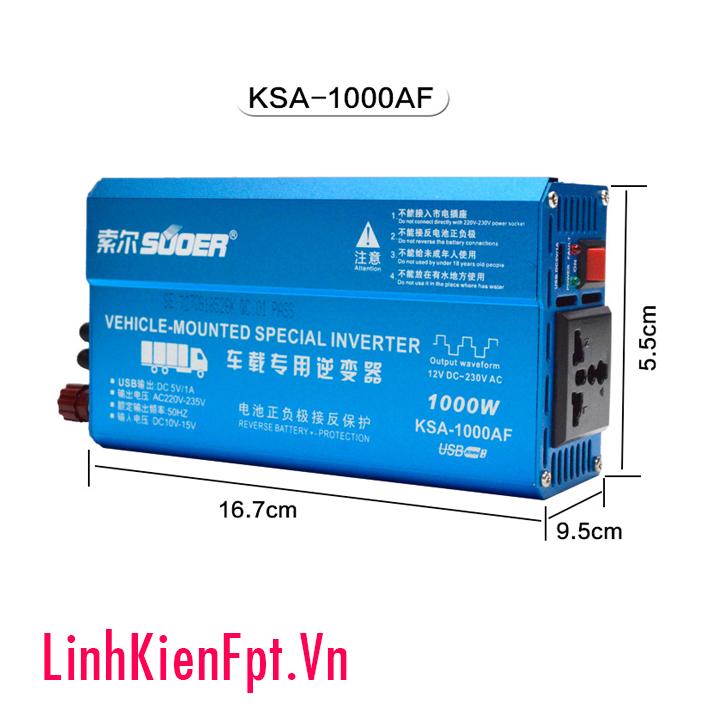 Bộ đổi điện tăng áp Inverter 12V~220VAC 1000W KSA-1000AF