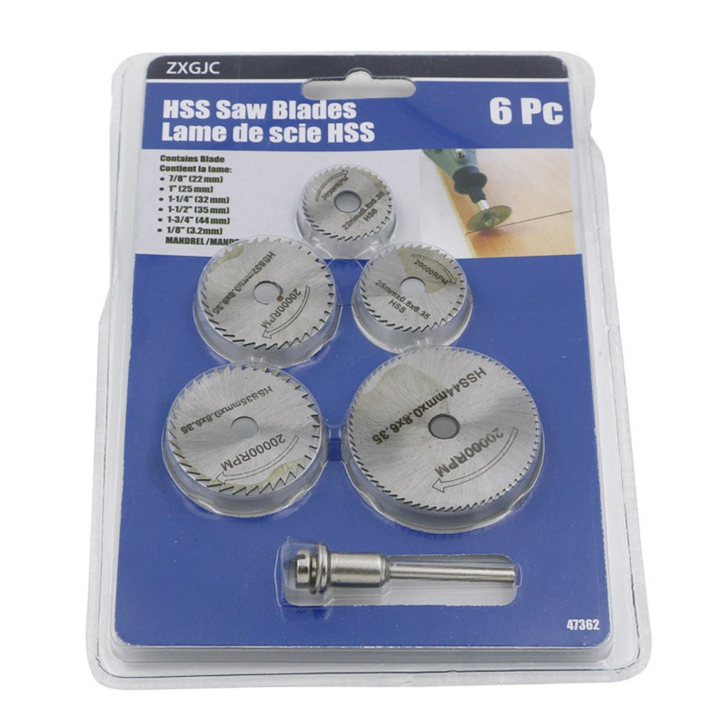 Bộ Lưỡi Cưa 6 Món bằng Thép Lưỡi cưa và bộ trục gá này rất lý tưởng cho việc cắt nhôm, đồng thau, đồng, gỗ và nhựa chính xác.