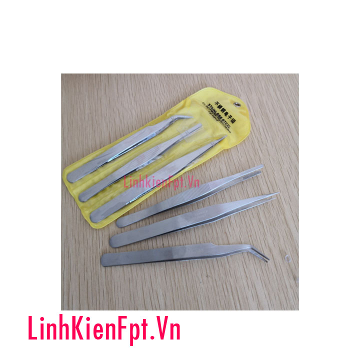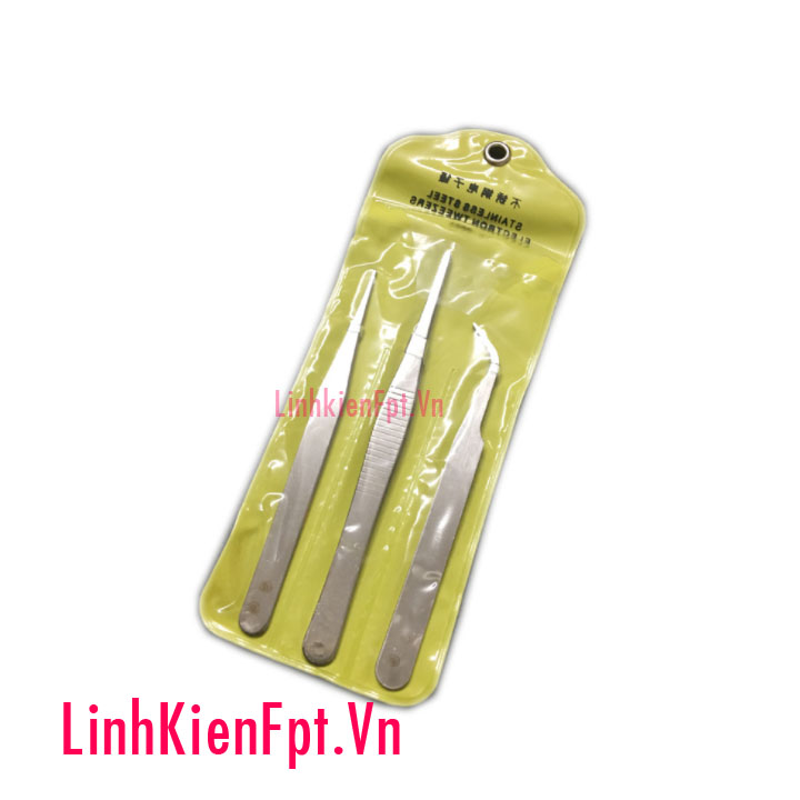 Bộ nhíp gắp linh kiện có 3 loại trọng 1 bộ Cong, Thẳng, Tù phù hợp cho các bạn sử dụng tùy vào mục đích khác nhau. Bộ nhíp gắp linh kiện sẽ giúp các bạn dễ ràng tháo hoặc gắp linh kiện khi khò hoặc hàn trên bo mạch. Nhíp được làm bằng thep không gỉ, được rất nhiều người sử dụng