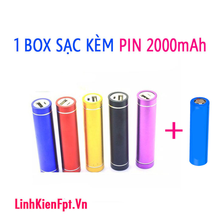 1- Box sạc dự phòng 1 cell vỏ nhôm bao gồm 1 pin lihium 18650 2000mAh