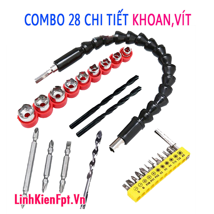 + Combo 28 chi tiết khoan , vít , dây truyền động là thiết bị , phụ kiện cơ khí giúp cho việc tháo dỡ các chi tiết máy , kỹ thuật
