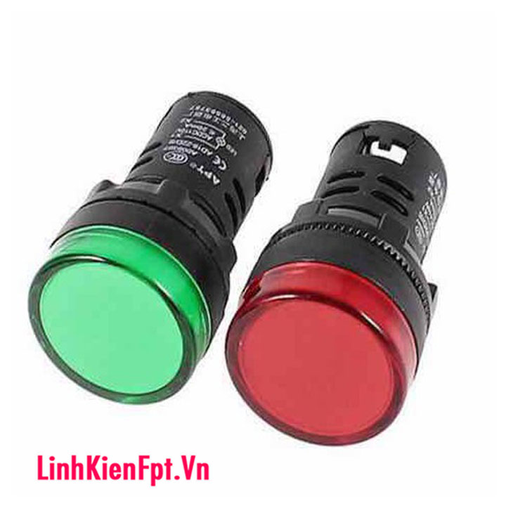 Đèn báo pha công nghiệp được thiết kế cho lỗ tủ phi 16, bao gồm các loại màu xanh lá, màu đỏ, màu vàng.
