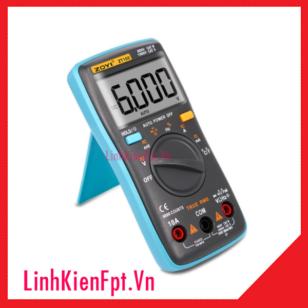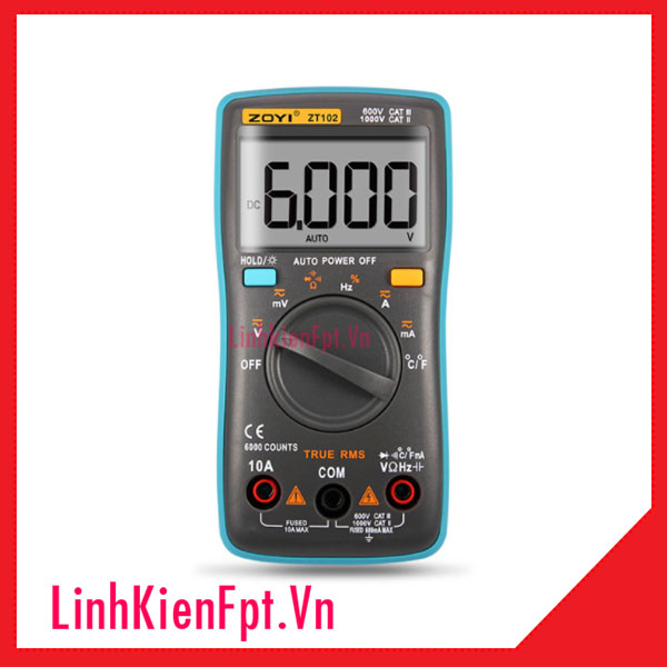 Zoyi ZT 102 thiết kế đa chức năng: Có thể đo điện áp, dòng điện AC/DC; đo tụ điện, đo diode, đo tần số và nhiệt độ sẽ đáp ứng nhu cầu làm việc của người dùng.