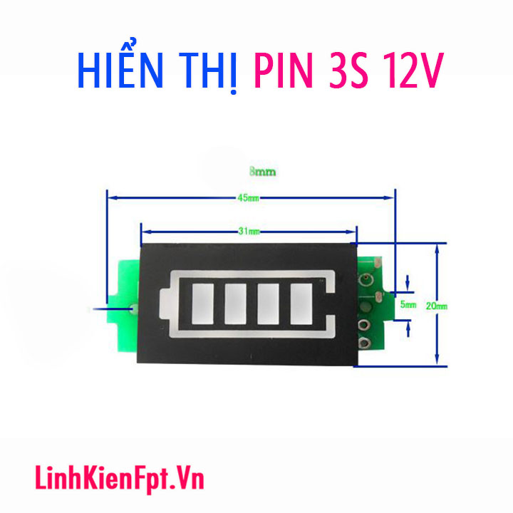+ Đồng hồ loại 12.6V Khi pin sạc đầy 12.6V đồng hồ sẽ hiển thị 4 cột xanh