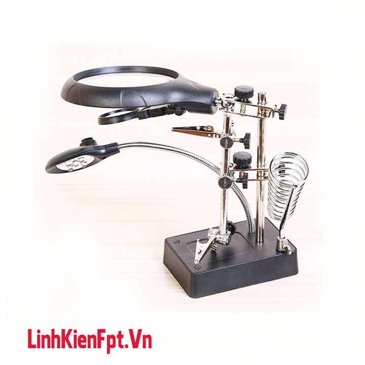 + Kính lúp có đèn chiếu sáng giúp bạn có thể hàn linh kiện vào ban đêm.