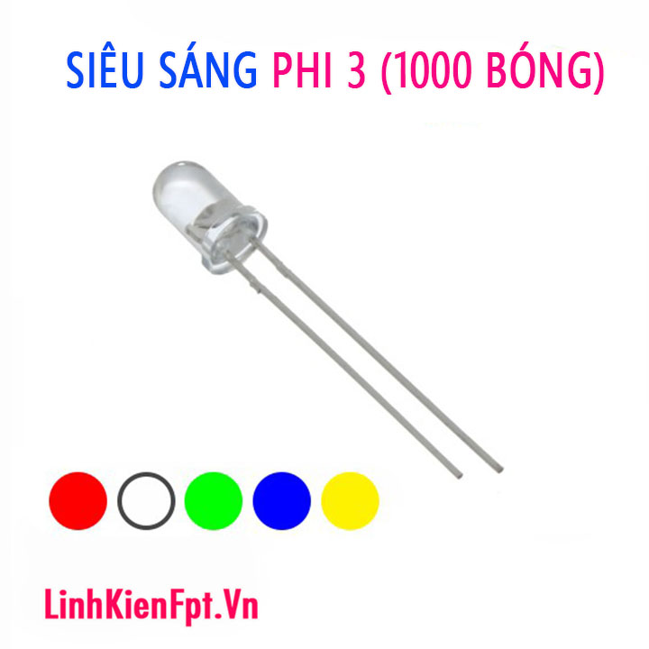 + Bóng đèn led đơn siêu sáng 3mm là loại led cho ánh sáng tinh khôi với kích thước bóng là 3mm, với 2 chân dài 28-29mm, được sử dụng nhiều trong cuộc sống hằng ngày để làm mạch led trái tim, led cube ....