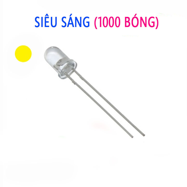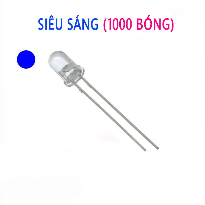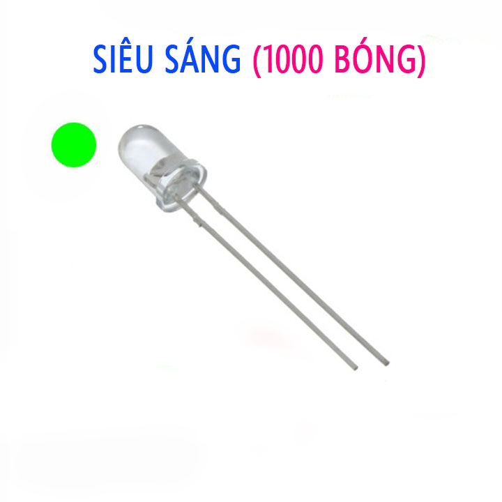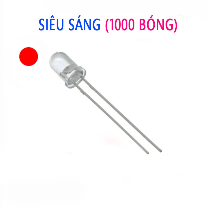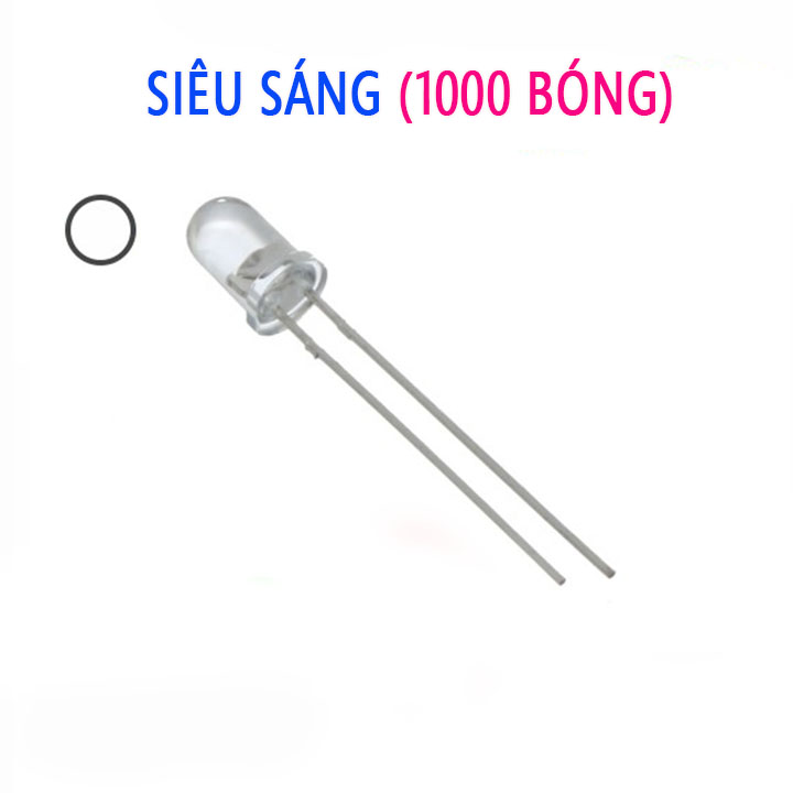 + Bóng đèn led đơn siêu sáng 5mm là loại led cho ánh sáng tinh khôi với kích thước bóng là 5mm, với 2 chân dài 28-29mm, được sử dụng nhiều trong cuộc sống hằng ngày để làm mạch led trái tim, led cube ....