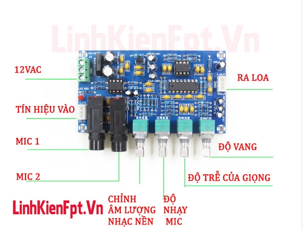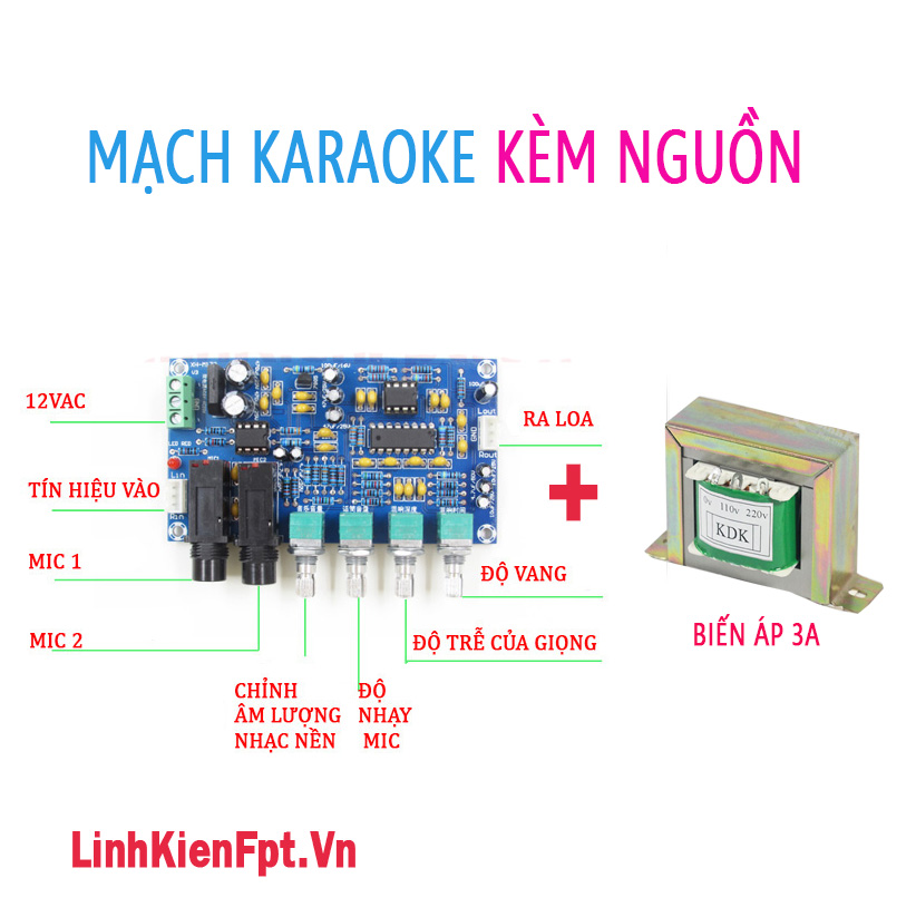 + KẾT NỐI 3 CHÂN RA CỦA NGUỒN BIẾN ÁP 12Vac VỚI MẠCH ÂM THANH KARAOKE ĐỂ SỬ DỤNG