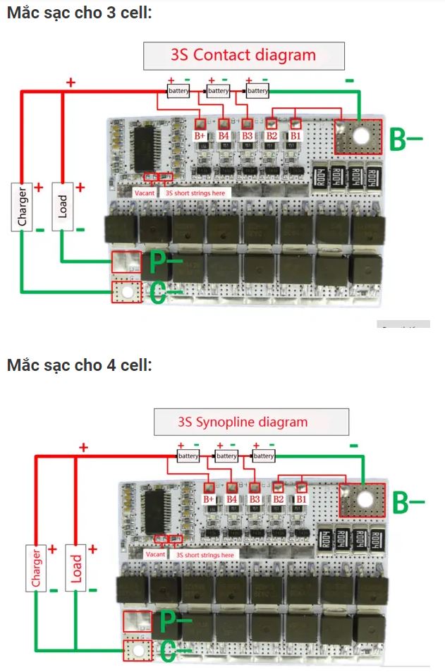 – Chức năng: Sạc cân bằng và bảo vệ cell Li-ion, dùng trong pin máy khoan, máy bắt vít, máy cưa,… có mức điện thế từ 9.6V 10.8V 11.1V 12V.