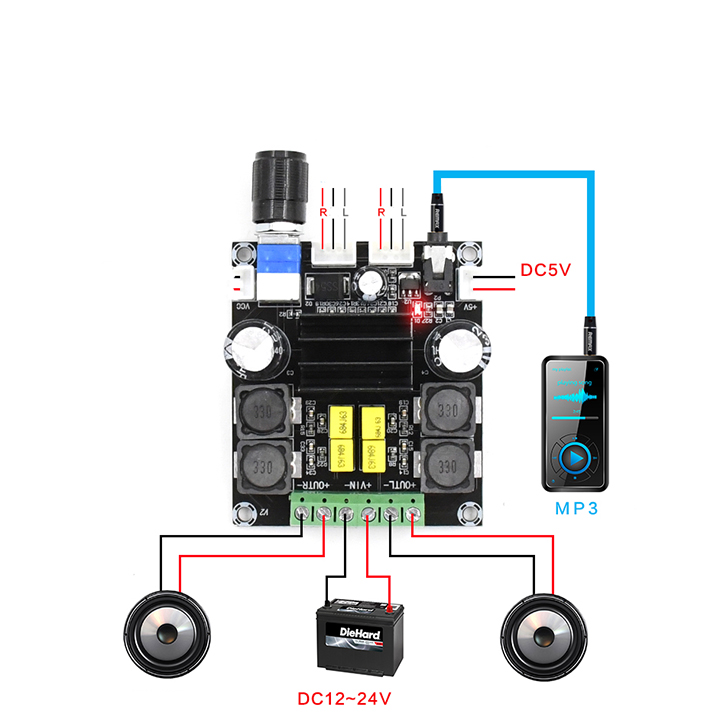 + Mạch khuếch đại âm thanh classD 2x100W TPA3116D2 sử dụng ic TPA3116D2 với công suất 100W mỗi kênh.