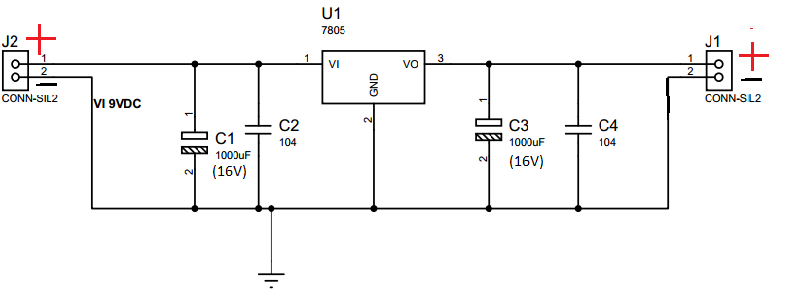 Dưới đây là sơ đồ mạch ổn áp 5V sử dung 7805: