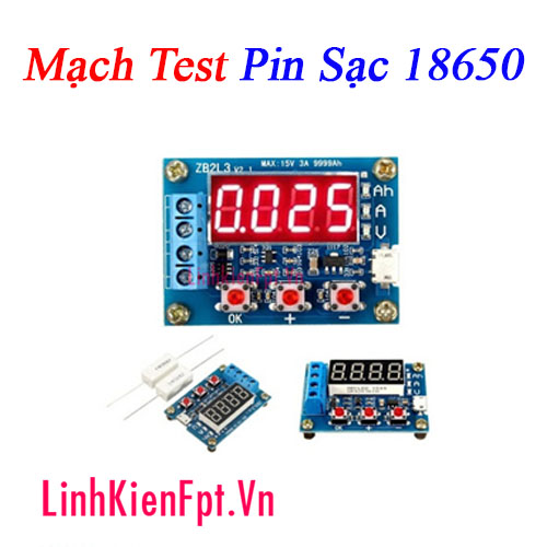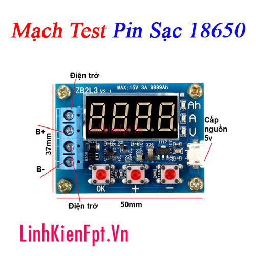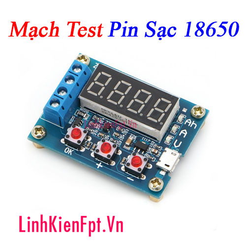 Mạch test pin 18650 1.5V-12V, với tính năng hiện thị áp, hiển thị dòng và hiển thị dung lượng pin tiêu thụ.