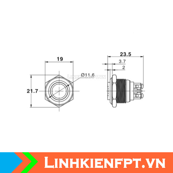Công tắc nút nhấn nhả bằng kim loại cỡ 16mm