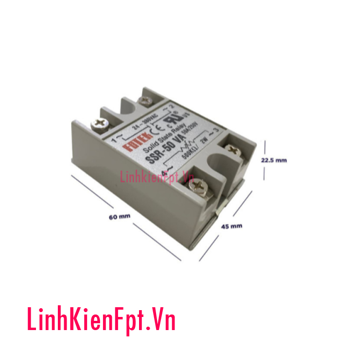 Relay Bán Dẫn Fotek SSR-50 VA-H là loại relay thường mở với dòng tải định mức là 25A, Relay sản suất theo tiêu chuẩn cao thường được sử dụng trong các tủ điện công nghiệp.
