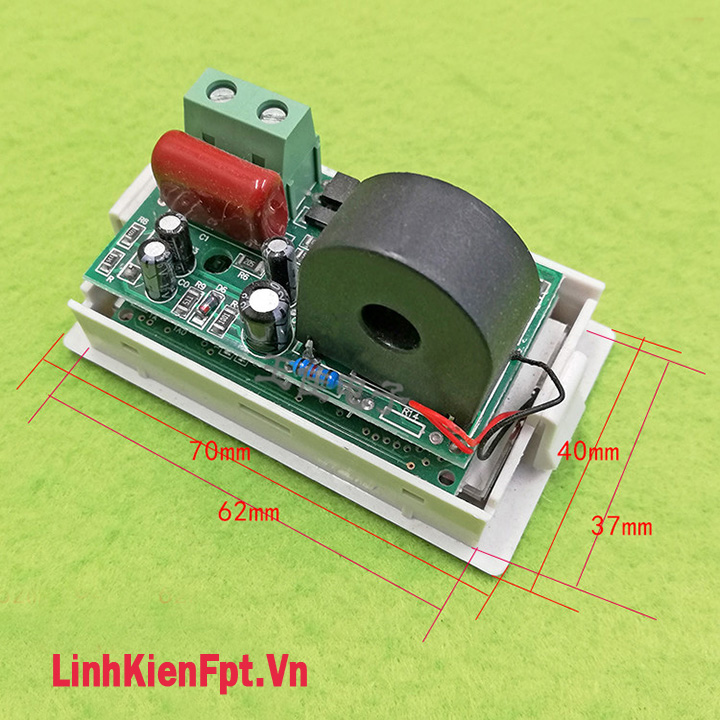 + Dây của thiết bị tiêu thụ , ta luồn 1 dây qua vòng đo dòng, sau đó đấu chung vào 2 chân nguồn AC