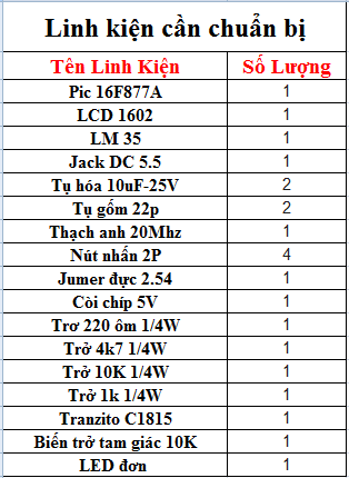 Chuẩn Bị Linh Kiện Cho Mạch Đo Nhiệt Độ Dùng PIC16F877A+LM35