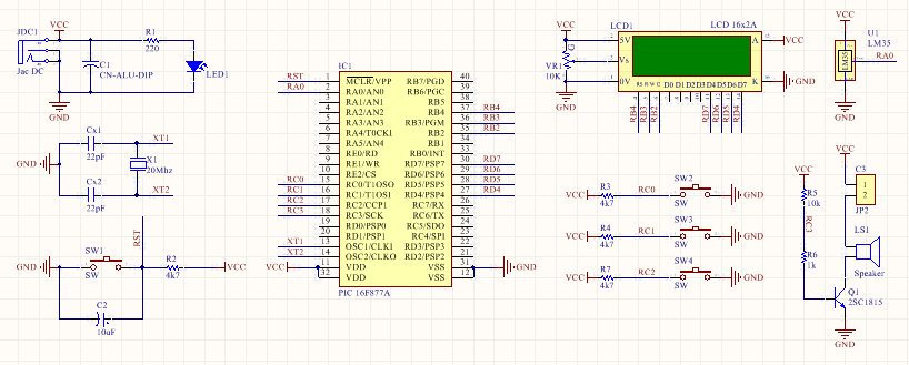 Sơ đồ nguyên lí Mạch Đo Nhiệt Độ Dùng PIC16F877A+LM35