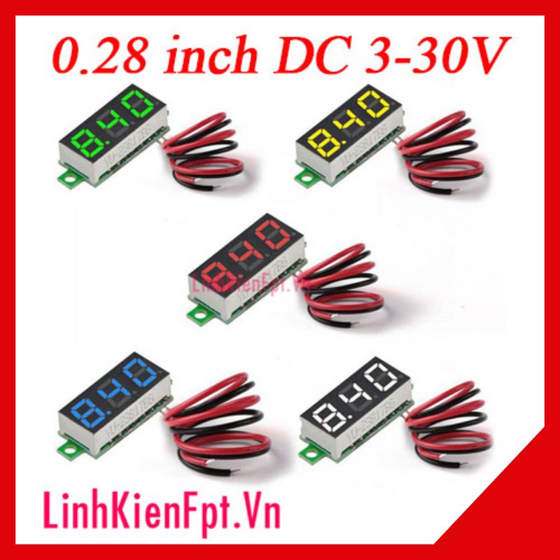 Vôn Kế Điện Tử DC 0.28 inh Màu Đỏ 3-30V